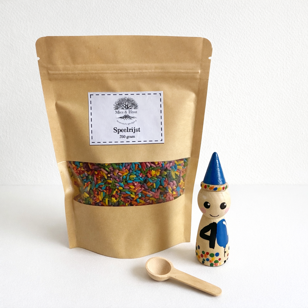 Hoe leuk is het ook je eigen verjaardags pegdoll cadeau te krijgen als je jarig bent? Inclusief zakje speelrijst Feest van 250 gram en een houten schepje.