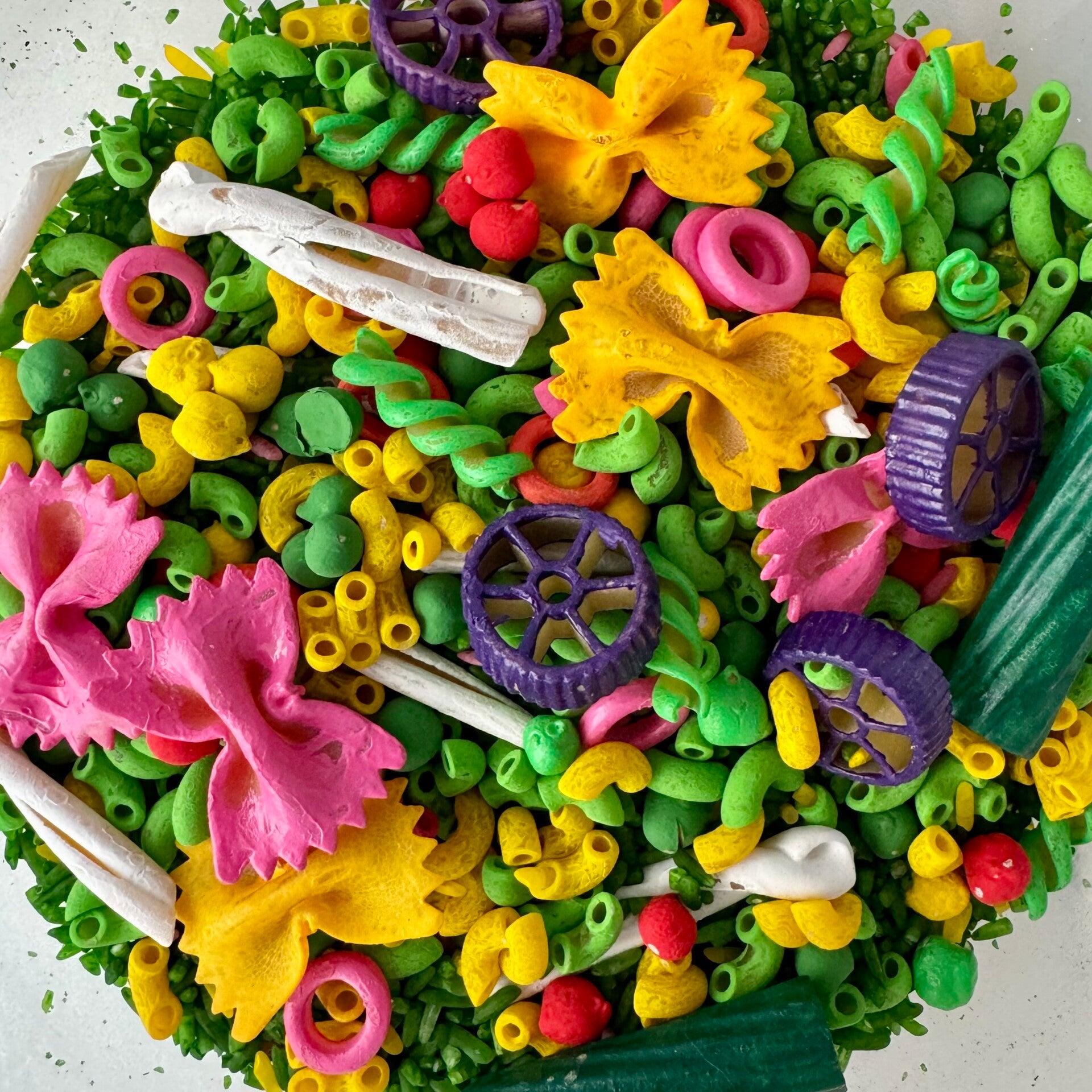 Alles is kleurvast gekleurd door middel van natuurazijn, voedingskleurstof en afgebakken in de oven.