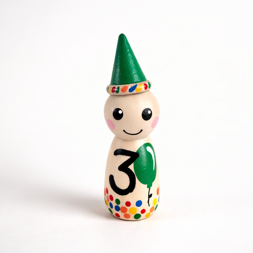 Deze handbeschilderde pegdoll is maar liefst 10 cm hoog. En is verkrijgbaar in de leeftijden 1 tm 5 jaar.