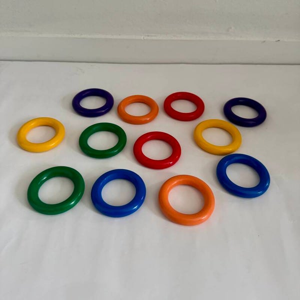 Setje van 12 regenboog ringen van 55 mm.