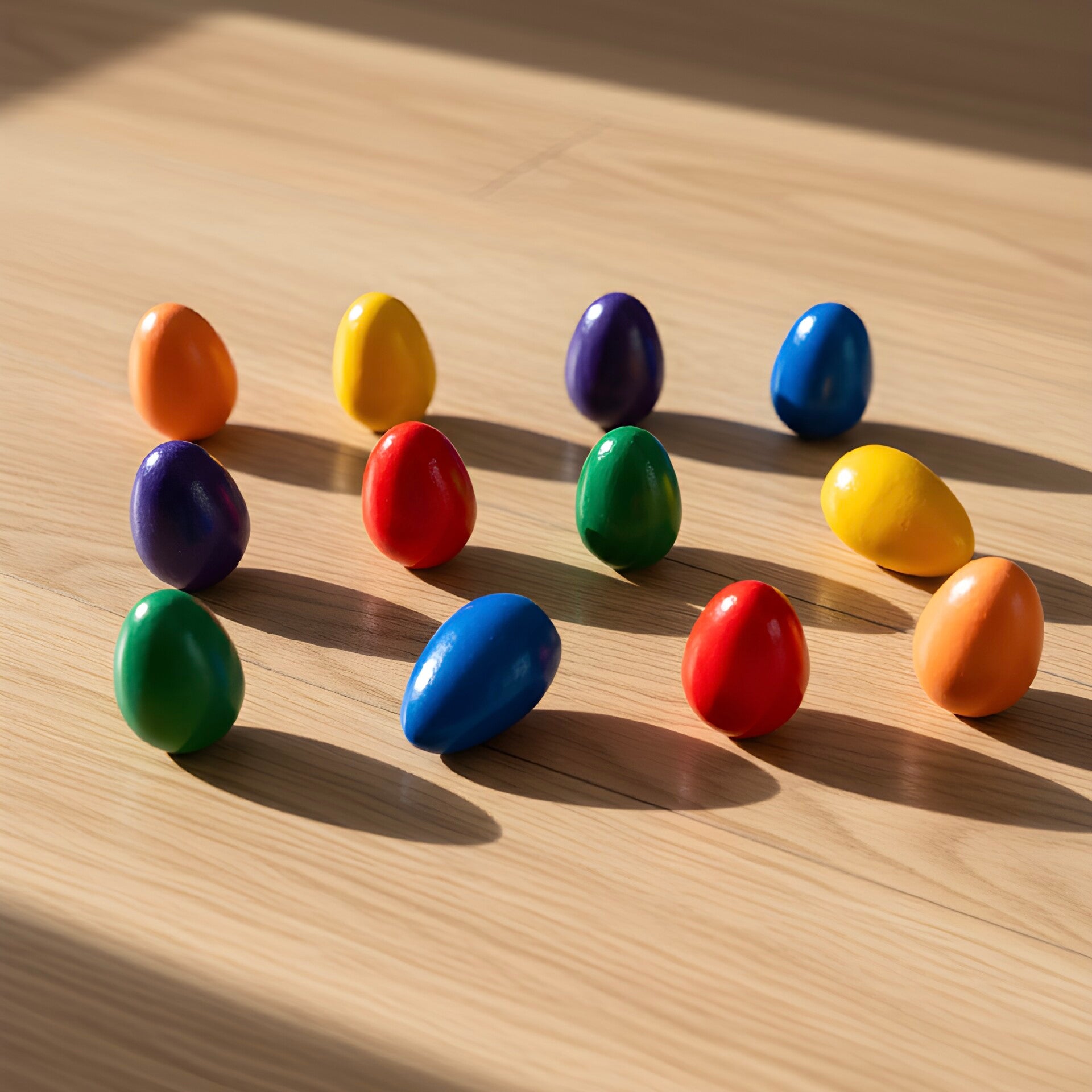 Setje van 12 regenboog eieren van 3,8 x 2,5 cm.