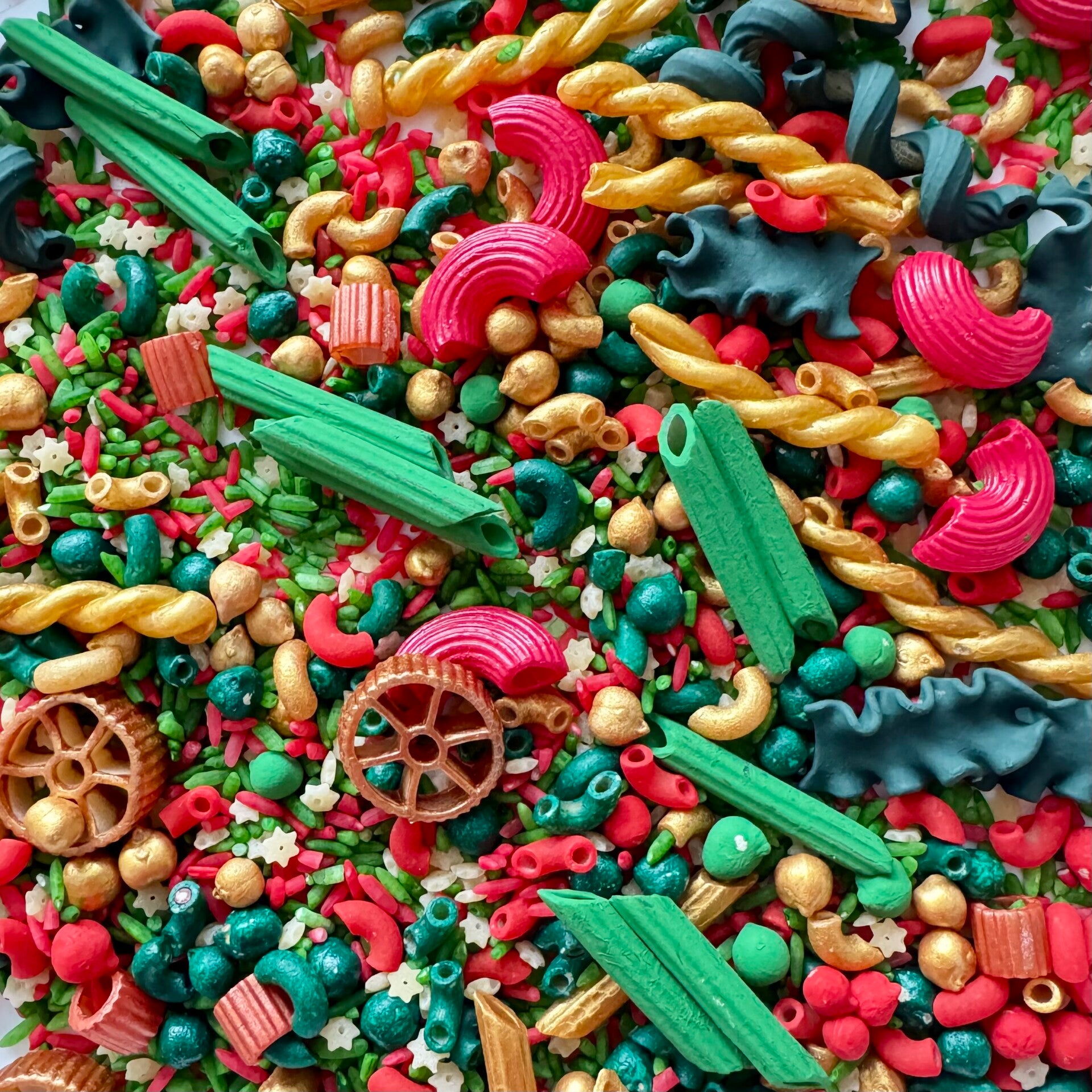 De pasta’s zijn gekleurd door middel van kindvriendelijke (gifvrij) acrylverf, gedroogd en afgebakken in de oven.